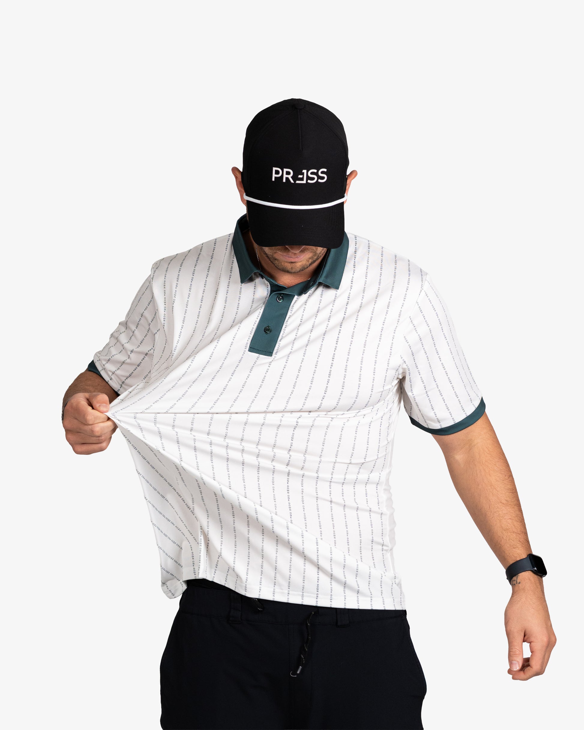 Down One polo built for the moment. Our performance polo, always dialed with our clean-back nine design. Built from a premium 90% poly, 10% spandex blend for the truest, 4-way stretch during play. Our 180gsm-weighted fabric hits that perfect balance: breathable for the course, quality and structure for the clubhouse. And reinforced stitching, fortified collar means it doesn't fold, no matter how much you PRESS.